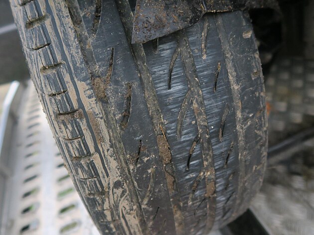 Řidič měl na autě úplně sjeté letní pneumatiky.