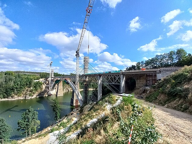 Stavba mostu v Červené pokračuje (konec léta 2023)