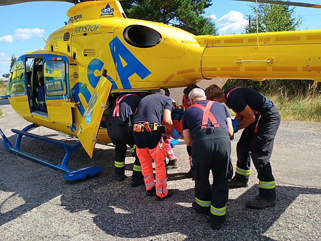 Zraněného muže transportoval vrtulník do budějovické nemocnice. (25. srpna 2025)