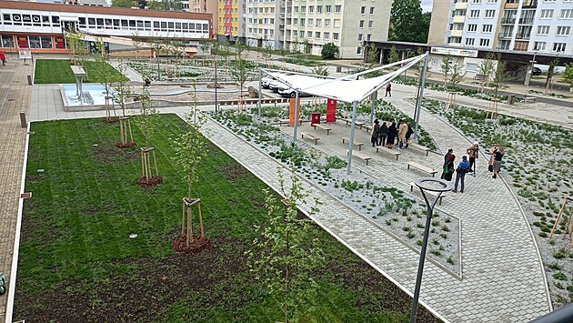 Obnovené náměstí na českobudějovickém sídlišti Vltava (duben 2024)