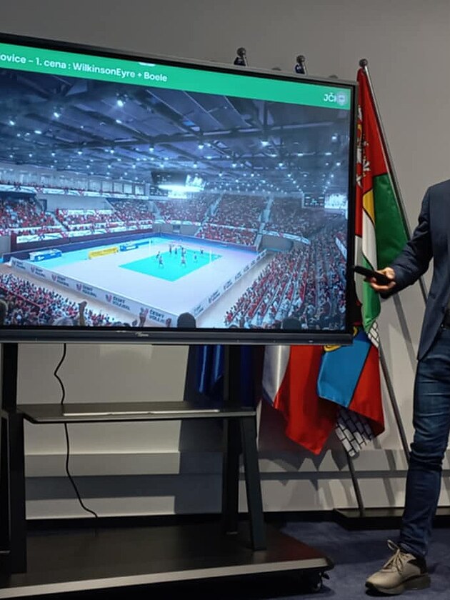 Hejtman Martin Kuba (vlevo) a náměstek primátorky Petr Maroš představují Centrum míčových sportů, které vyroste v Českých Budějovicích.