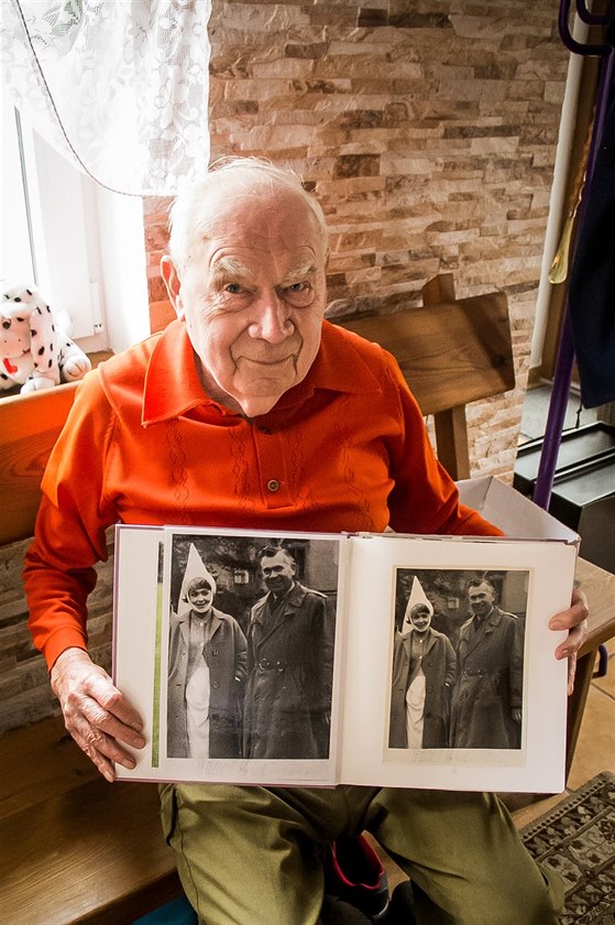 Josef Jančar pamatuje natáčení filmu a ukazuje fotografii s Jiřinou Bohdalovou.