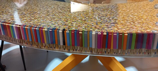 Společnosti Koh-i-Noor otevřela v Českých Budějovicích nové návštěvnické centrum. Lidi v něm zaujme stůl, jehož deska je vytvořená z pastelek.