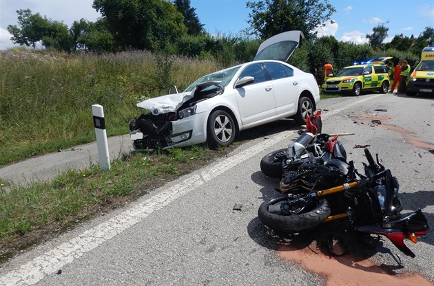 Při nehodě se kromě motorkáře zranili i čtyři lidé z osobního auta. „Vyproštění zraněných nebylo potřeba. Táborská jednotka zajistila auto i motorku proti požáru. Z octavie unikla chladicí kapalina a motorový olej, které hasiči zlikvidovali sorbentem,“ uvedla mluvčí hasičů Vendula Matějů..