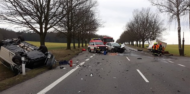 „Obě dodávky skončily po nehodě mimo komunikaci,“ informoval jihočeský policejní mluvčí Milan Bajcura. Jedna z dodávek je otočená na střechu.