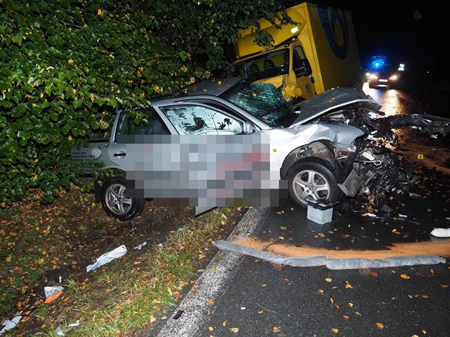 Řidič při předjíždění dostal smyk a narazil do stromu a pak i dodávky v protisměru.