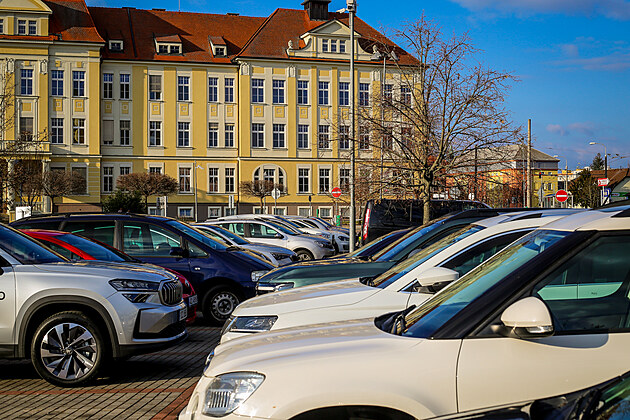 Parkoviště před areálem budějovické nemocnice bývá často plné.