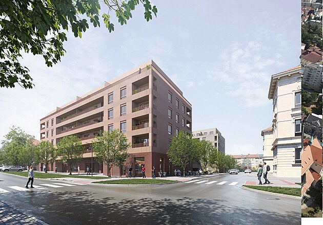 Jeden z bytových domů, který bude součástí druhé etapy výstavby. Nahradí dnešní nemocniční budovu, kde bylo ORL.