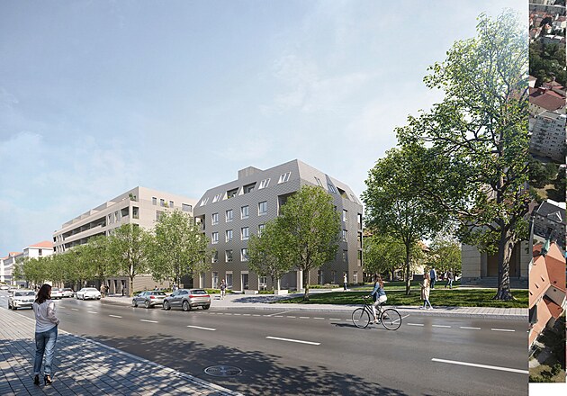 Pohled z ulice B. Němcové na domy druhé etapy výstavby