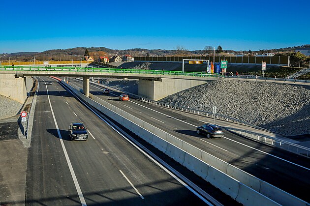Dálnice plní i funkci městského obchvatu, tedy jsme u Srubce.