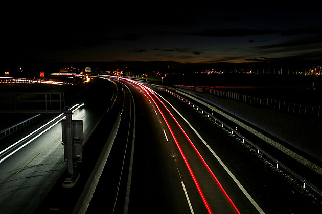 Noční pohled od sjezdu na Srubec směrem k jihu.