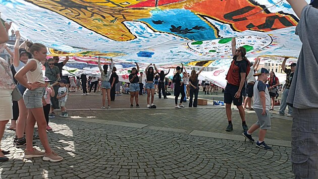 Náměstí Přemysla Otakara II. pokryla obří pomalovaná plátna.