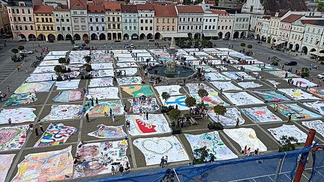 Náměstí Přemysla Otakara II. pokryla obří pomalovaná plátna.