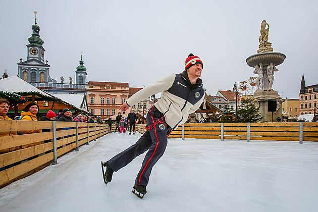 V pátek dopoledne se na náměstí Přemysla Otakara II. v Českých Budějovicích konala pozvánka a představení Olympijského festivalu. (12. prosince 2025)