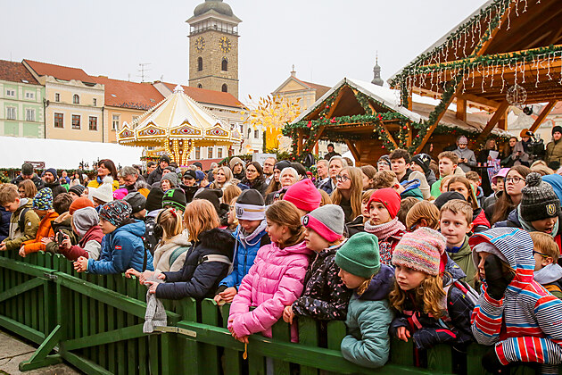 V pátek dopoledne se na náměstí Přemysla Otakara II. v Českých Budějovicích konala pozvánka a představení Olympijského festivalu. (12. prosince 2025)