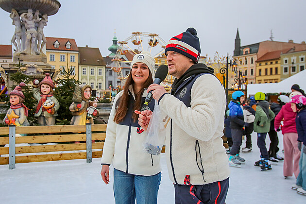 V pátek dopoledne se na náměstí Přemysla Otakara II. v Českých Budějovicích konala pozvánka a představení Olympijského festivalu. (12. prosince 2025)