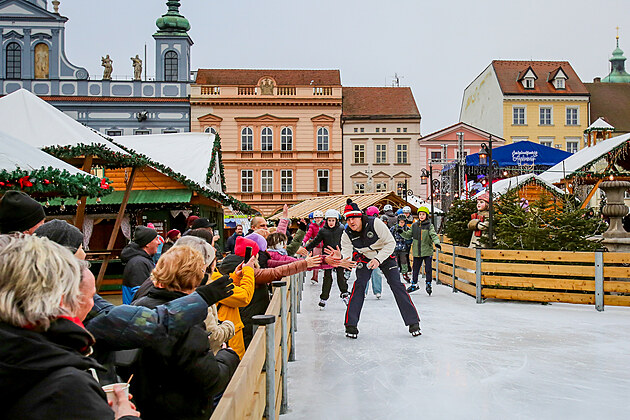 V pátek dopoledne se na náměstí Přemysla Otakara II. v Českých Budějovicích konala pozvánka a představení Olympijského festivalu. (12. prosince 2025)