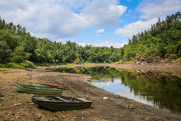 Tady na řece Vltavě pokračuje vzdutí vodní nádrže Orlík.