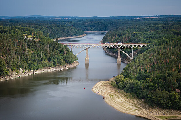 Na snímku železniční most v Červené nad Vltavou (6. srpna 2025)