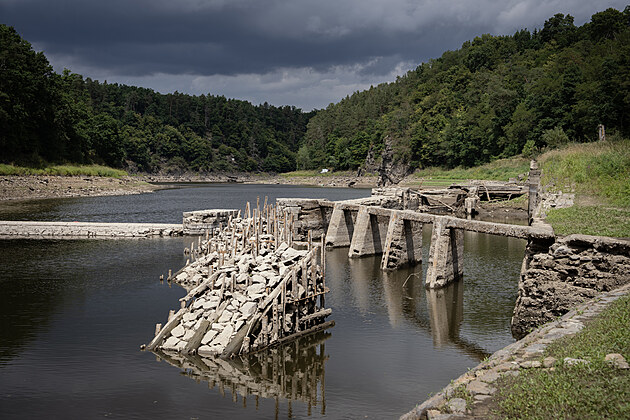 Na snímku jez Nový mlýn, bývalá elektrárna (6. srpna 2025)