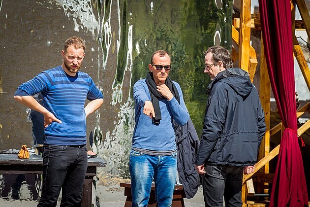 Činohra Jihočeského divadla zkouší pod režijním vedením Petra Zelenky (na snímku vpravo) na českokrumlovském otáčivém hledišti novou inscenaci Da Vinci.