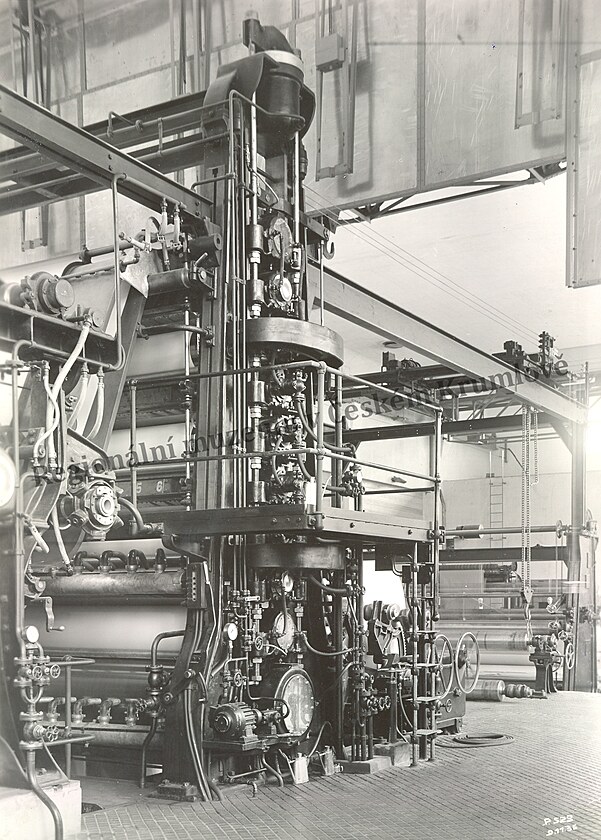 Kalandr rotostroje ve firmě Spiro (JIP - Papírny Větřní) v roce 1934