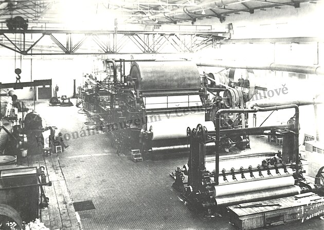 Papírenský stroj ve firmě Spiro (JIP - Papírny Větřní) v roce 1939