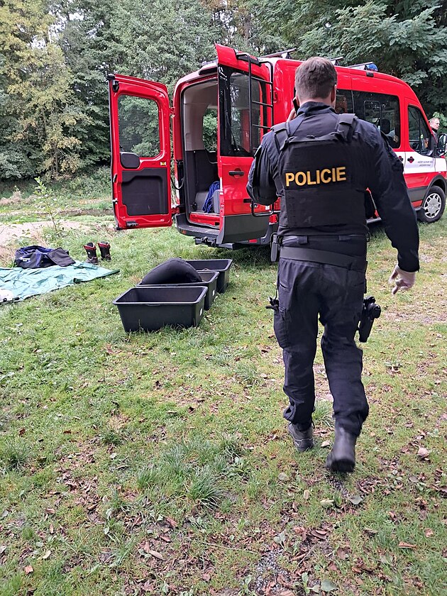 Policisté, hasiči či vojáci pátrali kolem řeky Volyňky, ale třeba i ve vodě pod Mutěnickým jezem. (24. září 2025)