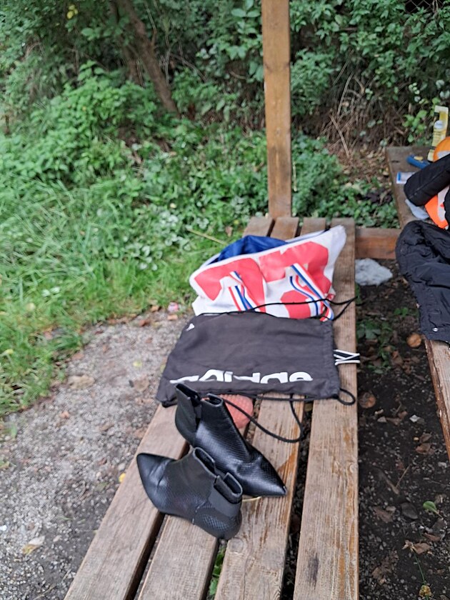 Na snímku jsou odložené věci. Policisté, hasiči či vojáci pátrali kolem řeky Volyňky, ale třeba i ve vodě pod Mutěnickým jezem. (24. září 2025)