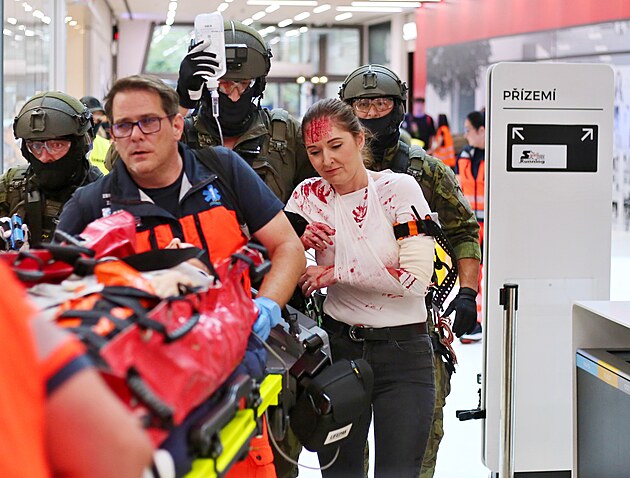 Mistrovství republiky zásahových jednotek začalo úvodní disciplínou v budějovickém IGY. Jednotlivé týmy musely za pomoci záchranářů zachránit napadené agentky. (22. září 2025)