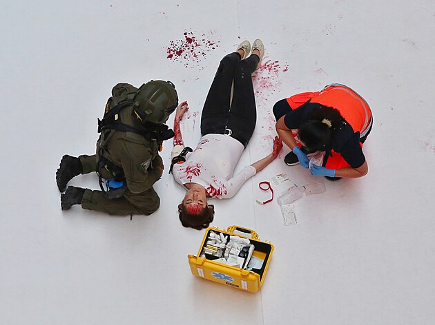 Mistrovství republiky zásahových jednotek začalo úvodní disciplínou v budějovickém IGY. Jednotlivé týmy musely za pomoci záchranářů zachránit napadené agentky. (22. září 2025)