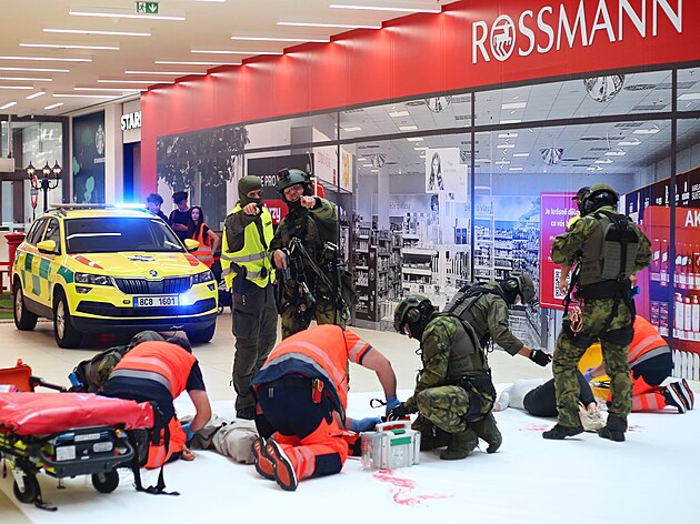 Mistrovství republiky zásahových jednotek začalo úvodní disciplínou v budějovickém IGY. Jednotlivé týmy musely za pomoci záchranářů zachránit napadené agentky. (22. září 2025)