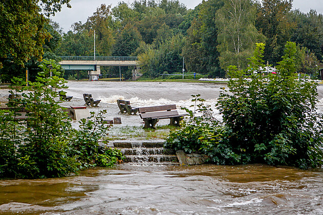 Snímek z Malého jezu na Malši v Českých Budějovicích. (15. září 2024)