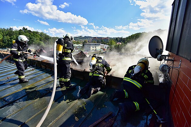 V Českém Krumlově shořel plavecký stadion. Požár zasáhl prakticky celou střechu, která se začala propadat dovnitř.