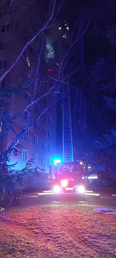Plameny se objevily v bytě v sedmém patře třináctipatrového panelového domu v ulici Průběžná na Pražském sídlišti v Českých Budějovicích.