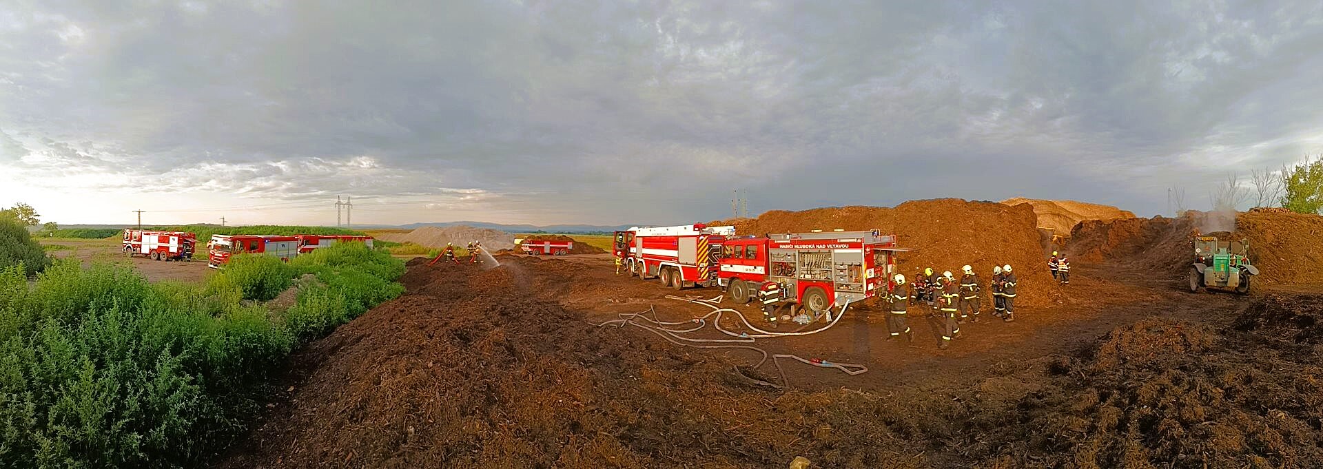 U Dívčic hoří skládka štěpky. (21. července 2025)