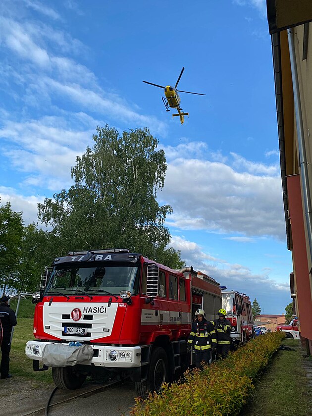 S přesunem muže do vrtulníku pomáhali také hasiči.