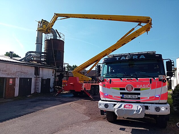 Ve Vrbně u Blatné hořela střecha truhlárny a silo s pilinami.