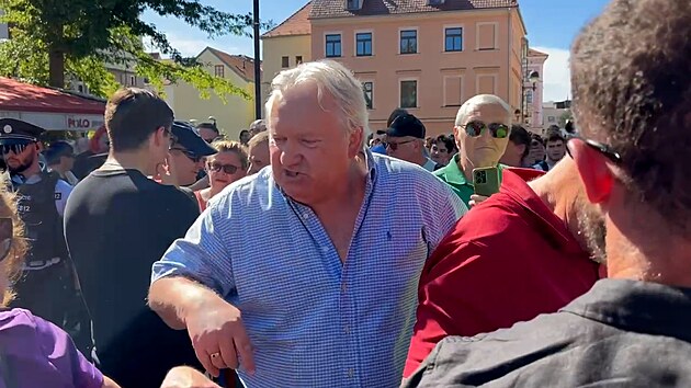 Nadávky, focení s příznivci i plivanec. Premiér Fiala zavítal do Budějovic