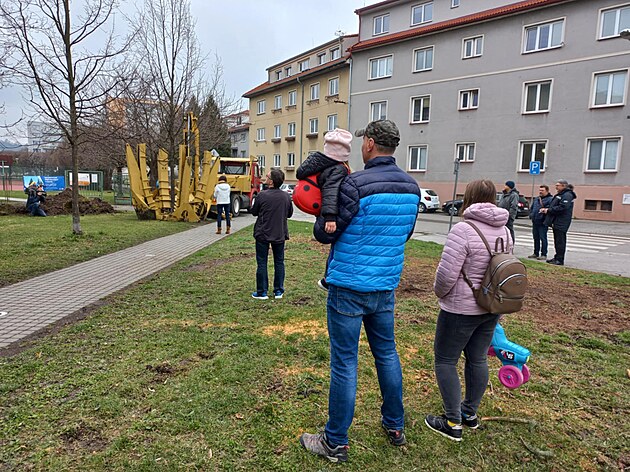 Ve Strakonicích poprvé vyzkoušeli přesazování vzrostlých stromů. Čtyři habry stěhovali od školy k tenisové hale. (1. dubna 2025)