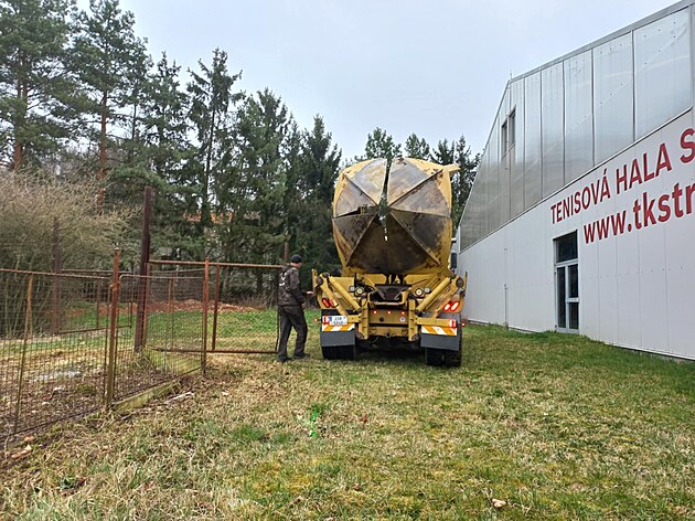 Ve Strakonicích poprvé vyzkoušeli přesazování vzrostlých stromů. Čtyři habry stěhovali od školy k tenisové hale. (1. dubna 2025)
