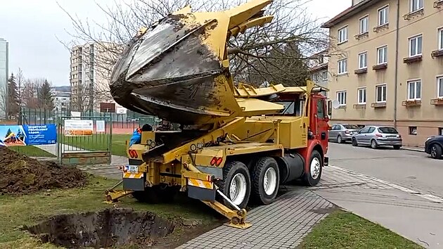 Ve Strakonicích pomocí speciálního stroje přesazují vzrostlé habry