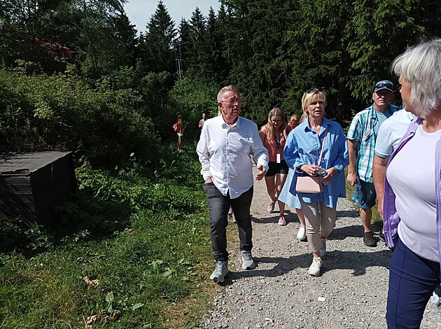 Evu Pavlovou doprovodil na Kleti majitel tamní rozhledny a jihočeský senátor Ladislav Faktor. (18. července 2023)