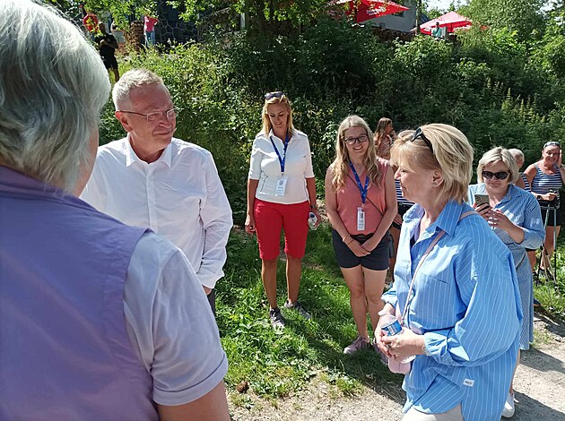 Evu Pavlovou doprovodil na Kleti majitel tamní rozhledny a jihočeský senátor Ladislav Faktor. (18. července 2023)