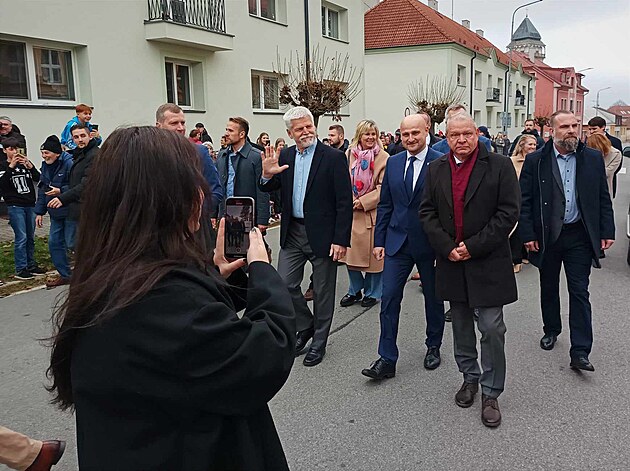 Prezident Petr Pavel se po přivítání na dačické radnici vydal procházkou přes město na oběd do restaurace.