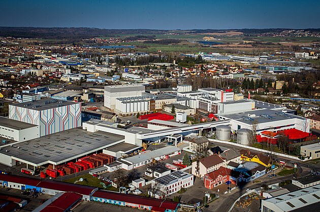 Areál Budvaru při pohledu z balonu. Návštěvnické centrum není vidět.