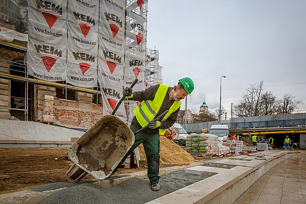 Dělníci upravují i prostor mezi kulturním domem a řekou Malší.