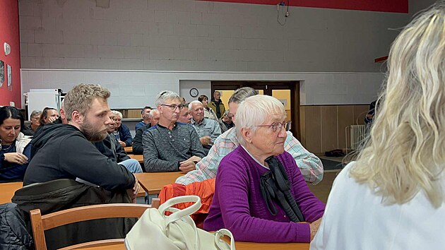 V kulturním sále v Ločenicích se konalo veřejné projednávání, které se týkalo plánované průmyslové těžby vltavínů. Většina místních je proti. (6. října 2025)