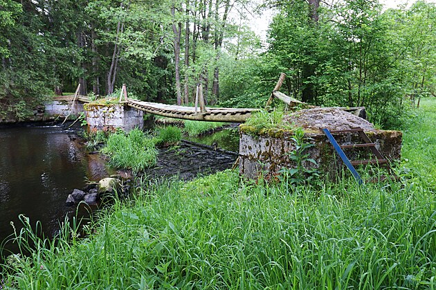 Dnes u Blanska v údolí Černé najdete jen pět kamenných pilířů a velice chatrnou lávku. Nicméně tady se dřív zachytávalo polenové dřevo, které se posílalo z horních toků v Novohradských horách.