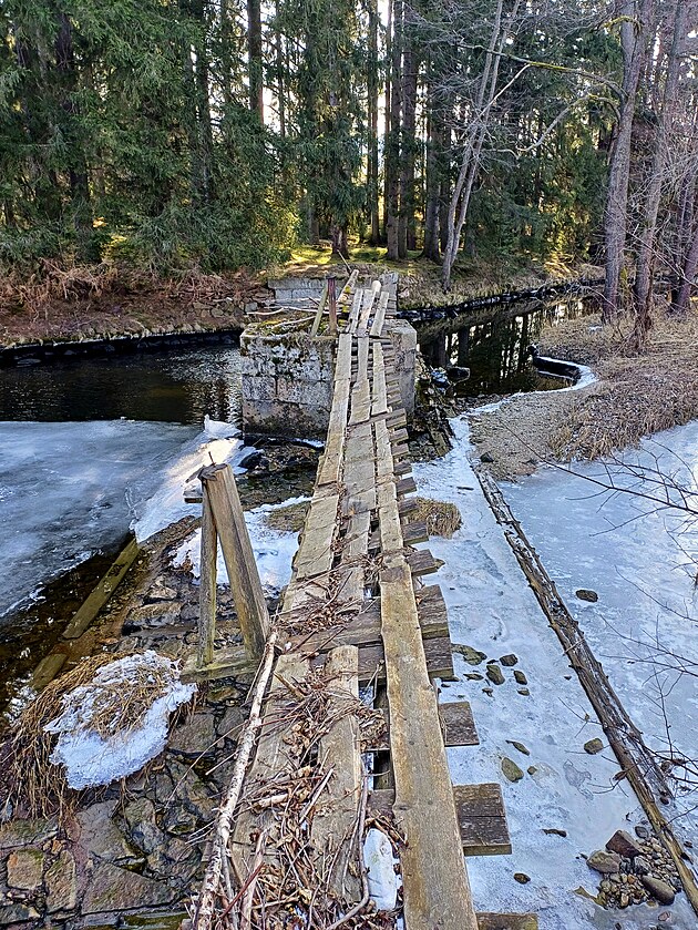 Do viditelných dřevěných trámků, které jsou ukotvené přímo v řece, se zapichovalo tak zvané brlení – kolmé dřevěné tyče, které zachycovaly plavené dřevo.